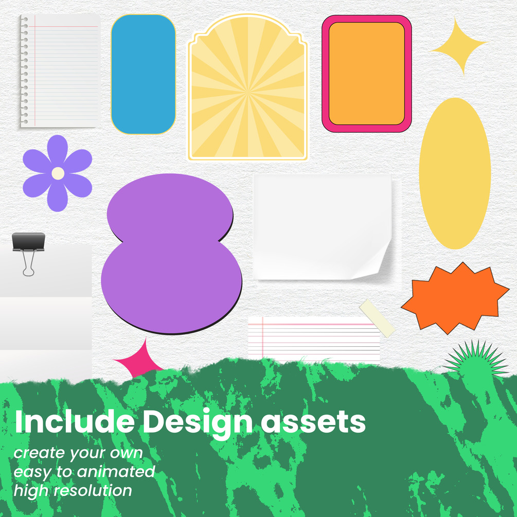 30 Instagram Posts & Stories + Png transparant, Design shapes & Background These templates are perfect for anyone to add to their Instagram feed. Each template features fun, exciting layouts and typography that will wow your followers! There is a wide variety of unique designs that will make your feed stand out. This pack includes posts & stories for images and text. Product Includes: 24 Instagram Posts 1080 x 1080 6 Instagram Stories 1080 x 1920 PNG template Design assets Backdrops Easily edit the fonts, colors, graphics, layouts, and more Video tutorial to use Video to animate the template EPS files are completely editable for your use Organized Design assets