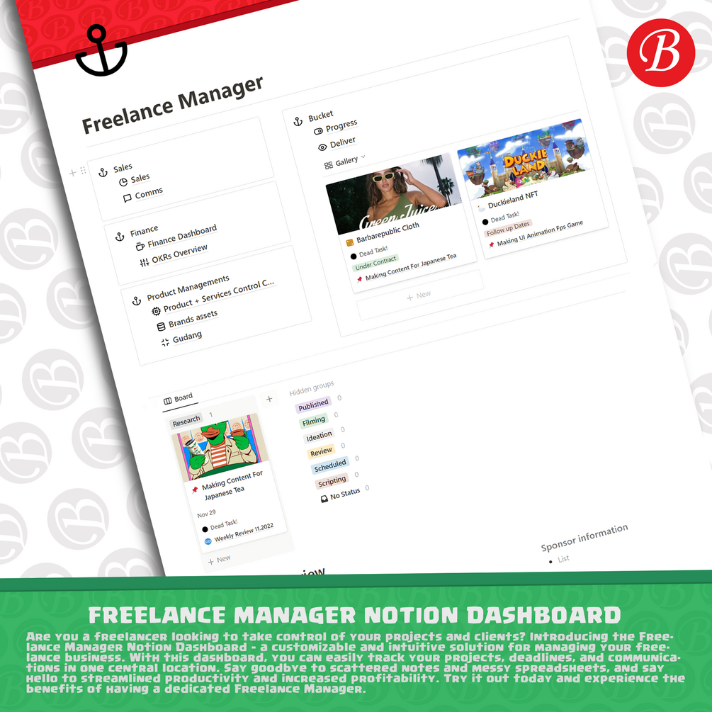 Freelance OS Notion Dashboard is a customizable and intuitive tool that helps freelancers manage their projects, tasks, and schedules in one place. With its user-friendly interface and powerful features, this Notion dashboard allows users to keep track of their deadlines, prioritize their work, and collaborate with clients and colleagues more effectively.