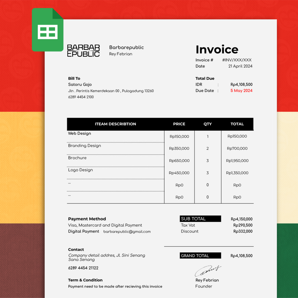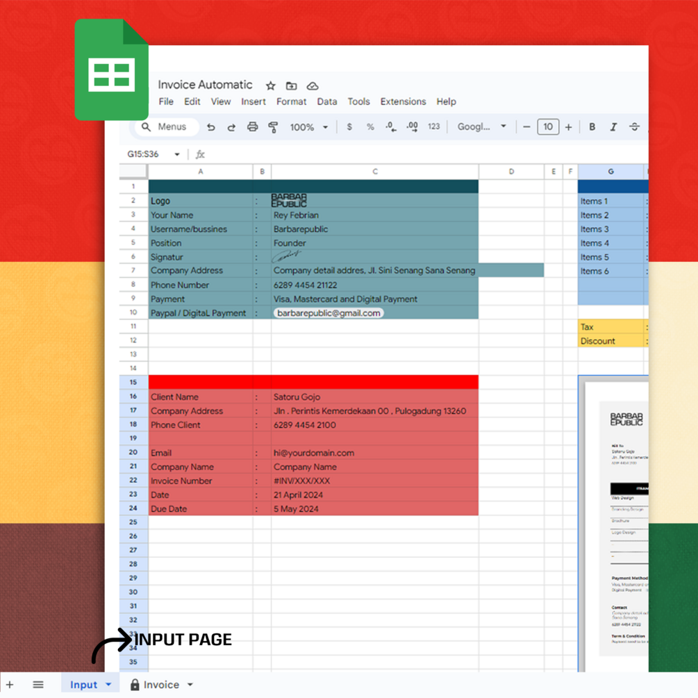 Introducing our Google Spreadsheet Invoice Generator Template, the ultimate solution for creating professional invoices effortlessly. Tailored for small businesses, freelancers, and entrepreneurs, this template combines ease of use with powerful features to streamline your invoicing process from start to finish.