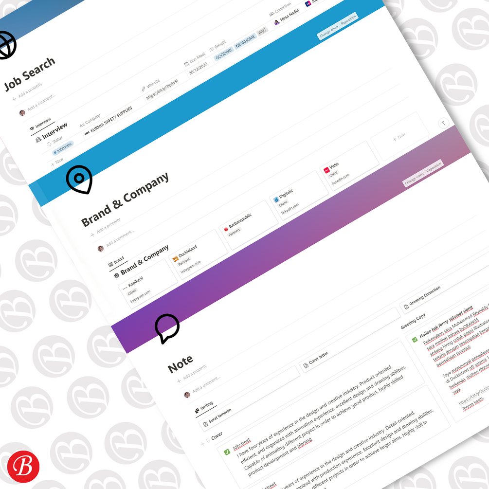The second database is the Brand or Company database, which allows you to research and track the companies you're interested in working for. With this database, you can store information about the company's mission, values, culture, and any recent news or developments that might be relevant to your job search.